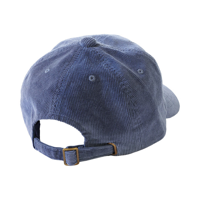 店名のDAILYのロゴを刺しゅうしたユニフォーム的なキャップです。季節に合わせてコーデュロイの生地で作りました。形は浅すぎず深すぎない、ベーシックな六方型。バックスタイルには、メタルのスライダーバックルで留める調節可能なストラップを付けました。色は、ベージュとインディゴの2色。ロゴは同じトーンで刺しゅうしました。柔らかく軽いフィット感で、男性にもおすすめです。